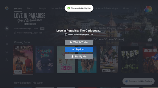 For upcoming shows they’re interested in, viewers can add them to their list and get notified when the shows premieres.