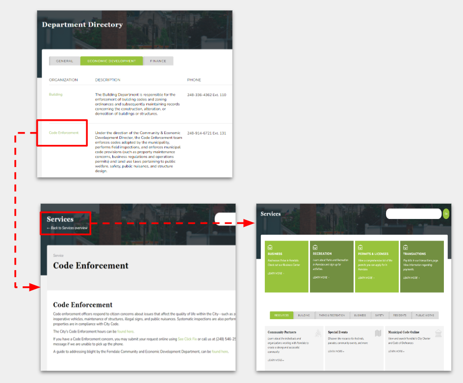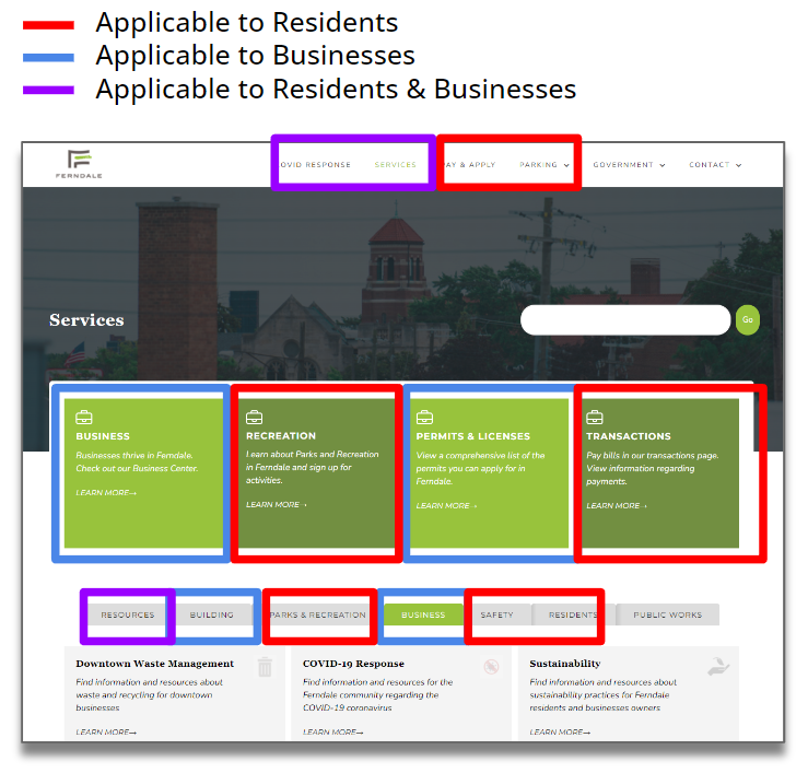 How might we help the citizens of Ferndale find the resources they need on Ferndalemi.gov?